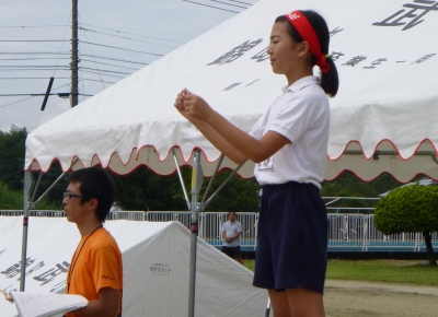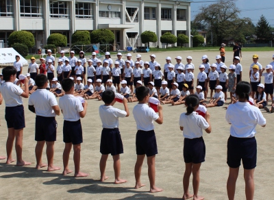 その後、最初の応援練習が行われ、応援団を中心に、大きな声が運動場いっぱいに広がりました。