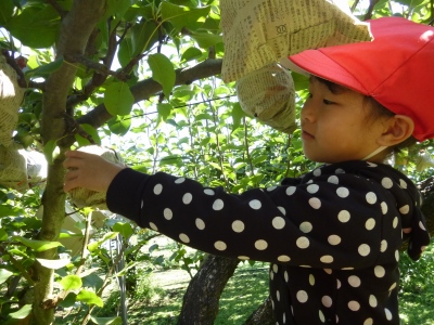 「わーっ、大きい!私、これにする!!」 | 「採れたての梨はおいしいね!」 |
