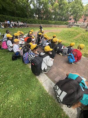 生活科の時間、1年生と2年生が学校探検を行いました。2年生が1年生を案内しながら、学校を回りました。