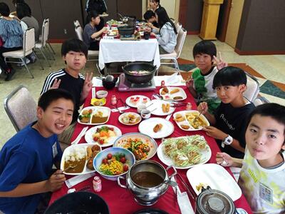 おはようございます。修学旅行2日目の朝食です。長崎は雨のようです。