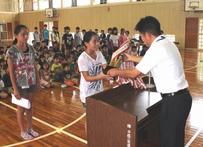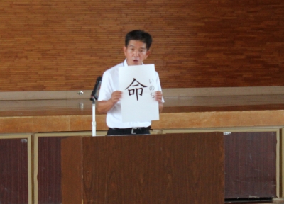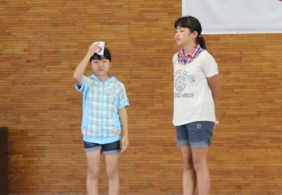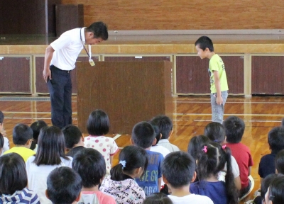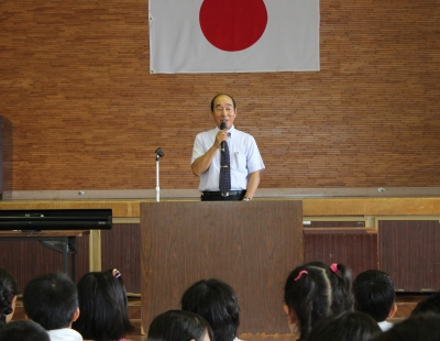 また、夏休みの生活について、「1学期の始業式で『命を大切にすること』と『何事にもチャレンジしよう』ということをお願いしました。皆さん、よく頑張ったと思います。引き続き夏休みも『命を大切にすること』『夏休みにしかできないことにチャレンジすること』そして『お手伝いをしっかりすること』を頑張って下さい。」と話をされました。