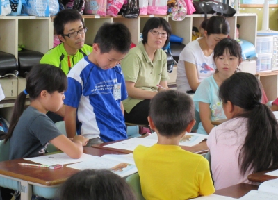 授業参観は、低学年は「牟田梨園訪問」、5年生は「集団宿泊教室の成果発表会」など、保護者の方々が子どもたちと一緒に楽しんで参観や活動できるように学習内容が工夫されていました。