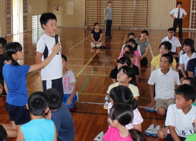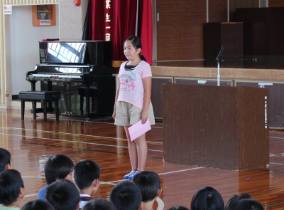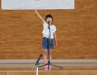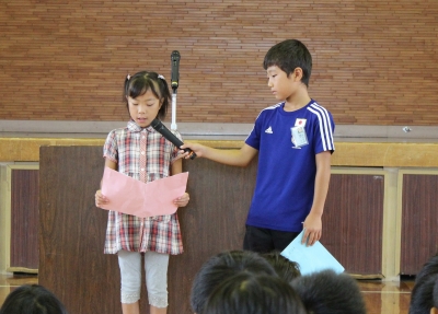 また、2名の代表児童が「1学期や夏休みは、算数を頑張りました。2学期は運動会があるので、綱引きで腰を落として一生懸命頑張ります。」など、2学期に向けての抱負を発表しました。