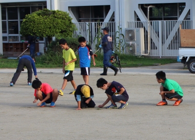8月17日(日) 全家庭の保護者と4年生以上の子どもたちが参加して、午前6時30分から7時30分の1時間で校内美化作業が行われました。