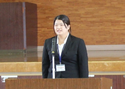 最後に、観察実習生の深水佑衣さん(本校の卒業生で、現在ルーテル学院大学2年生)の紹介がありました。「皆さんとたくさん交流したいです。5日までの短い期間ですが、将来、先生になるために、しっかりと勉強して帰ります。」と挨拶を述べられました。
