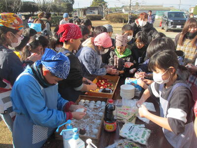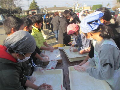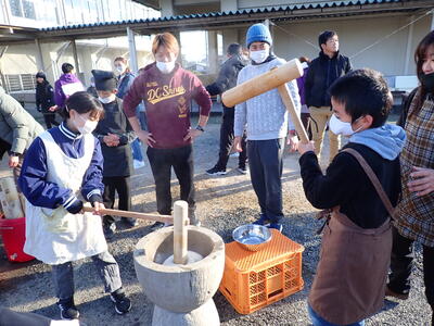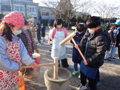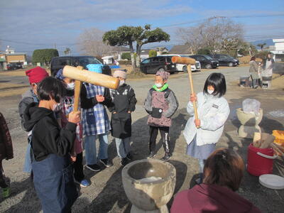 5年生の学年行事で餅つきを行いました。寒い中でしたが、子どもたちは楽しんで餅つきを行っていました!