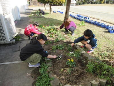 グリーンアップタイムがあり、花壇の草むしりを行いました。