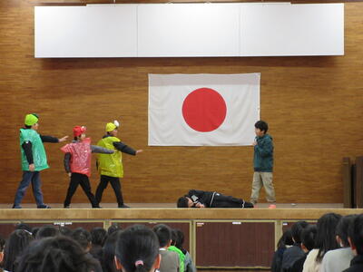クローバー集会がありました。給食委員会の発表で、堂々とした劇を行い、子どもたちは楽しみながら食について考えることができました。