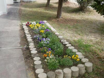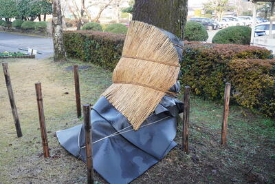 敷地内の木が弱っていたため、用務員の先生に根巻きしていただきました。また、子どもたちが木に触れないように、柵も建てていただきました。
