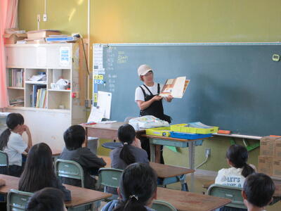 児童は目を輝かせながら、絵本に惹きつけられていました。