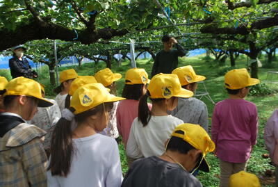 1年生は、牟田さんの梨園にフルーツ探検に行きました。