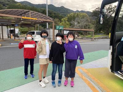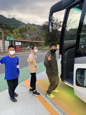 最後の休憩所、宮原サービスエリアを出発しました。みんな、最後まで元気です。