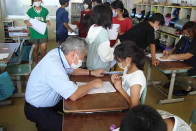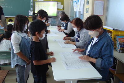 前回に引き続き、学習支援ボランティアの皆さんに来校していただきました。今回は、1.2.3年に入って丸付け支援をしていただき、子どもたちもわくわくしながらプリント学習に取り組むことができました。また、校長先生にも3年生に入っていただき、学習支援していただきました。