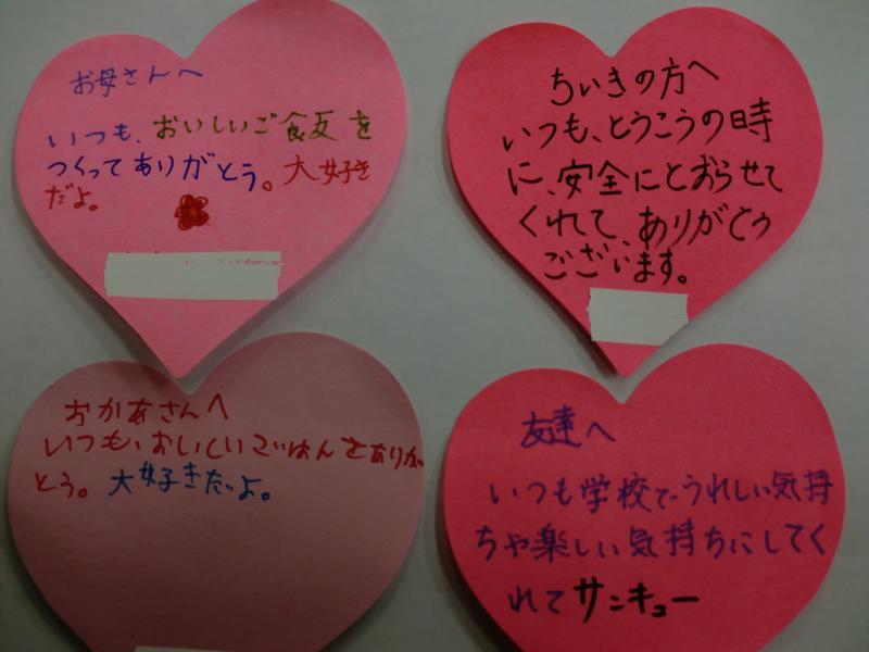以前ブログ紹介した「ありがとうの木」の取り組みについて、木にたくさん貼られた子どもたちの素敵なコメントの一部を紹介します。