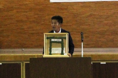 西嶋先生からは、10月の生活目標「本をたくさん読もう」について話があり、昨年度の本の貸し出し数をもとに、今年は「全員で合わせて25000冊の本を読みましょう。」と呼びかけられました。