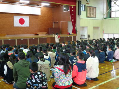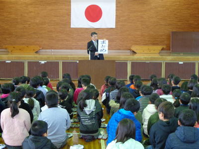 校長先生からは、「3学期は1年間のまとめの時期であり、次の学年へのつなぎの学期でもあります。一日一日を大切に過ごしてください。」というお話があり、子どもたちは真剣に聞いていました。