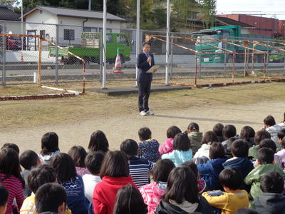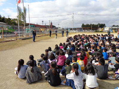 また、訓練の途中には、緊急出動の要請が入り、消防署の方々が出動されるという場面もありました。子どもたちは、消防署の方々の緊迫したやりとりを見ながら、「命を守る現場に向かう方々の姿・表情」や「人の命の尊さ」を実感したのではないかと思います。