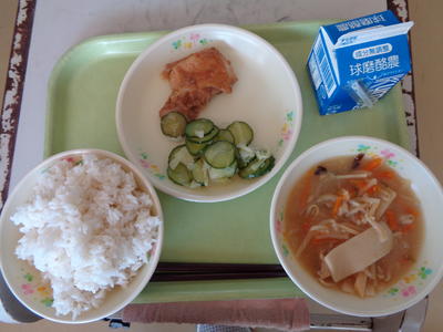今日は「ふるさとくまさんデー」で、9月の旬の食材は「梨」でした。給食のメニューでは、キュウリとキャベツに梨があえてある「梨サラダ」が登場し、とてもおいしかったです。