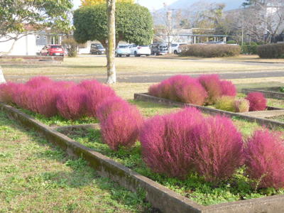 九州各地では紅葉のシーズン真っ盛りで、見に行かれたご家庭もあるかと思います。ここ一武小の校地東側にあるイチョウも見事に色づいています(1本に見えますが実は2本のイチョウです)。また学校園のコキアも赤く色づきました。