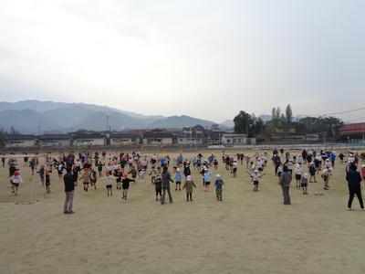 まずラジオ体操を行ったあと、2分間、縄跳びの練習をしました。