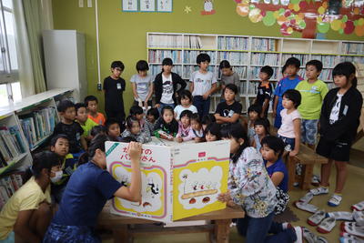 多くの子どもたちが真剣な表情で読み聞かせを聞いていました。