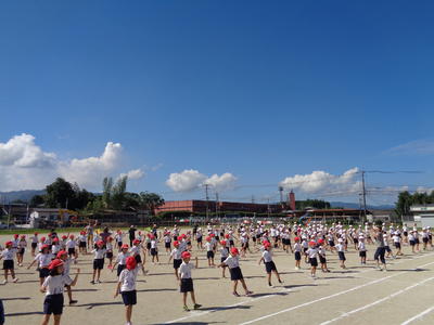 運動会全体練習の2回目が行われ、入場行進や開会式、全校ダンス「サンバDE錦」の練習がありました。日差しが強く、とても暑かったですが、子どもたちは集中してがんばりました!!