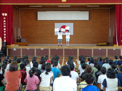 今日はクローバー集会があり、保健委員会の発表でした。保健委員会からは、クイズ形式で「歯に関する問題」を出しました。子どもたちは、楽しくクイズに参加することができ、歯を大切にしようとする意識も高まったと思います。子どもたちからは、「よくかむことの大切さが分かりました。」等の感想が聞かれました。