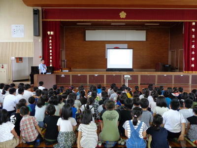 今日は7月の全校集会がありました。内容は校長講話(3匹のかえる)でした。