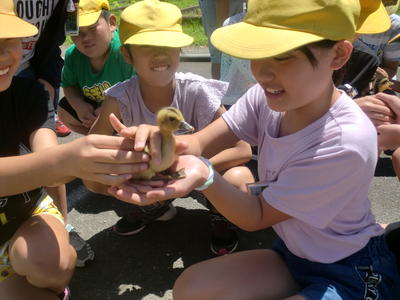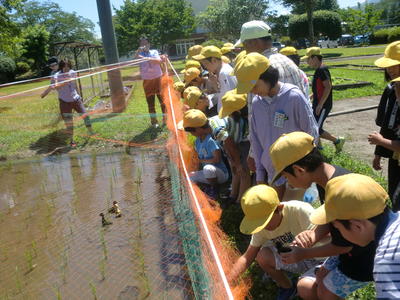 今日は、本校5年生が校内にある田んぼ「一武っ子田」にアイガモを放鳥しました。アイガモを放鳥する前にアイガモとふれ合った子どもたちからは、「ふわふわしていて気持ちよかったです。」や「『田んぼのお世話よろしくね』とアイガモにお願いしました。」などの感想がありました。アイガモ農法を通して、おいしいお米ができると思います。収穫が楽しみです!