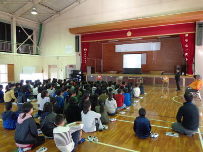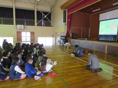 今日は、1~3年生と4~6年生に分かれて、人権集会がありました。