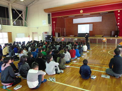 また、4~6年生では、ドコモの方を講師にお招きして、「スマホ・ケータイの安全な使い方を学び、自他を大切にする心を養う」というテーマで人権集会を行いました。「情報を公開するときに気をつけること」や「文字だけでのやりとりでは気持ちが伝わりにくいこと」、「ルールやマナーの大切さ」等について学びました。