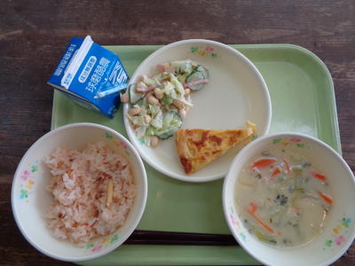 そこで今日の給食は、スペインの「パエリア」と「スパニッシュオムレツ」が登場しました。とてもおいしかったです!!