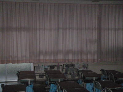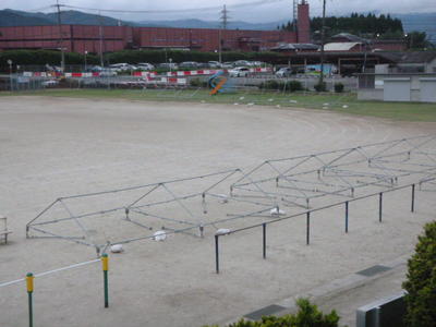 学校でも、運動会用テントをたたんで幕を外したり、教室にはカーテンをしたり、飛散する可能性のあるものを室内に入れたりして、台風対策を行いました。