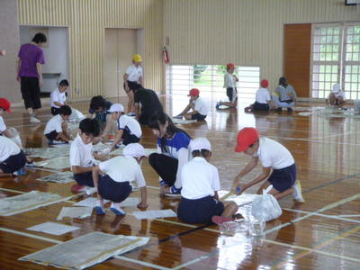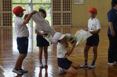 10月31日(木)に、鑑賞学習の一環として、人形劇団京芸による「ウォートンとガラスのコンテスト」という人形劇を予定しています。この人形劇には4年生も出演することになっており、その準備として劇団から団員5名が来校され、当日へ向けてのワークショップが行われました。劇団員の皆さんに指導してもらいながら、人形を作ったり、操作の仕方を覚えたり、ダンスの練習もしたりしました。