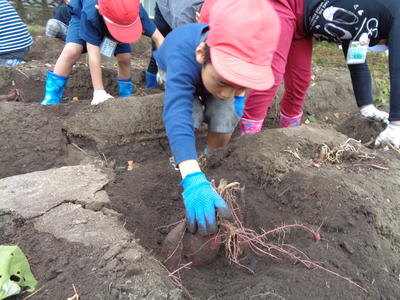 土の中には大きな芋がたくさん入っていて、子どもたちは「実りの秋」を実感することができました。