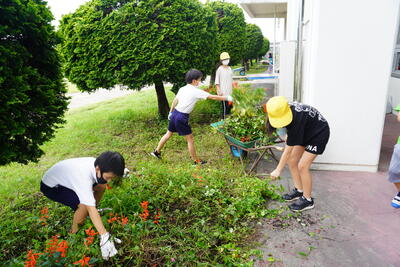 今日はグリーンアップタイムがありました。子どもたちは、学年の花壇や担当の場所等、環境委員会の子どもたちを中心に時間いっぱいきれいにしました。