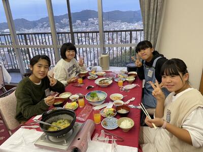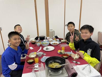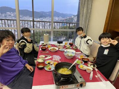 朝食中です。