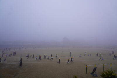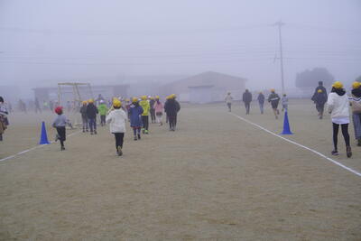 霧がとても深く、気温も低い中でしたが、子どもたちは自分のペースで一生懸命走っていました。