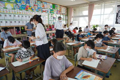 授業後に実施した授業研究会では、球磨教育事務所の新宮愛智指導主事を講師をお招きし、授業についての指導、助言や「熊本の学び」について講話をしていただきました。今後の授業づくりに向け、職員全員で研究に取り組み、子どもたちの学力向上等を更に目指していきたいと思います。