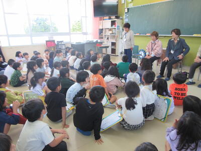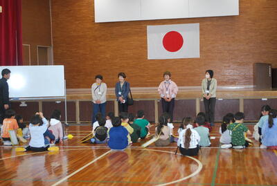 4人のボランティアの方々にもご協力いただき、学校には、どんな部屋があるか、楽しく探検しました。