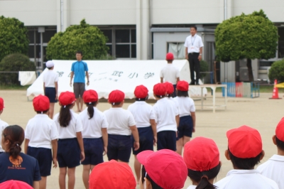 9月4日(金) 運動会応援団の結団式が行われました。最初に校長先生から、「運動会は赤白に分かれて競い合いますが、しっかりと協力し合って素晴らしい運動会になるように頑張って下さい。」と激励の言葉が贈られました。その後、赤団、白団に分かれて、まず5・6年生の応援リーダーの子どもたちが「一生懸命がんばるので、みんなもぼくたちにしっかりついてきて下さい!」と自己紹介を行い、引き続き応援団長を中心に応援練習が行われました。運動会に向けて士気を高めることができました。