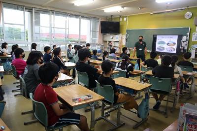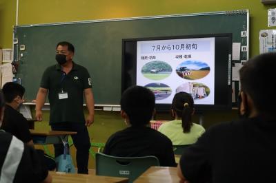 5年生の「ふるさと教育」が行われました。講師として一武狩政地区の税所昭彦様に来ていただき、農業の大切さについてお話をいただきました。水稲栽培や一武校区の恵まれた環境を生かした農業について話があり、子どもたちは真剣に聞いていました。「美味しく食べてもらえるように作っています。」という生産者側の声を間近に聞くことで、子どもたちは一武校区の農業について多角的に見る機会をもつことができたようです。今日の学習を総合的な学習の時間での「米作り」に生かしていきます。