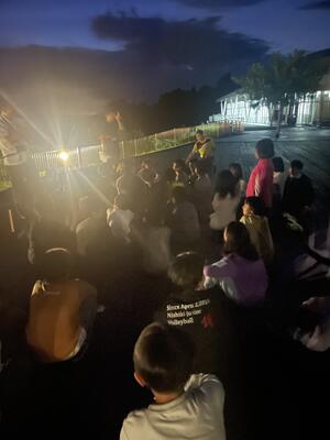 みんなで楽しくナイトゲームをしました。暗い道を恐る恐る歩いていましたが、最後はみんな笑顔で、1日の活動を終えることができました。