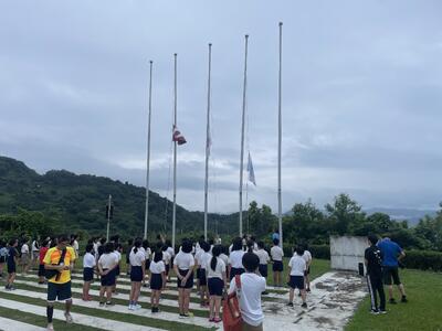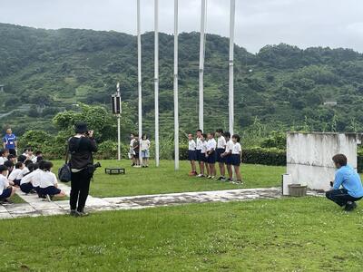 天気は曇り。風はなく、波もなく海は穏やかです。子どもたちは力を合わせてペーロン船を漕いでいます。