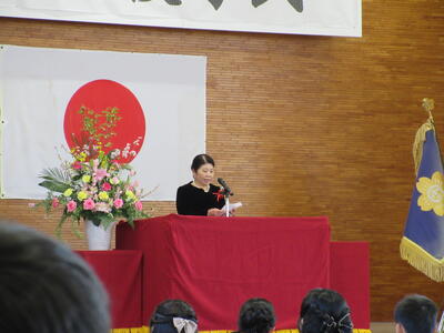 式では、立派な態度で卒業証書を校長先生から受け取り、「巣立ちの歌」では、卒業生が家族や保護者、先生、地域の方に感謝の言葉を述べていました。