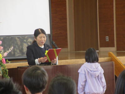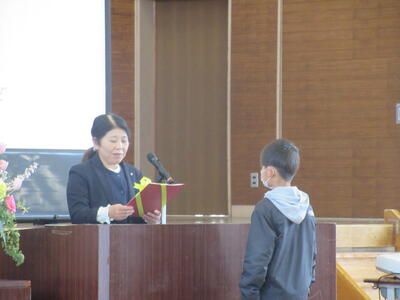 1~5年生の修了式でした。各学年の代表へ修了証が校長先生から贈られました。