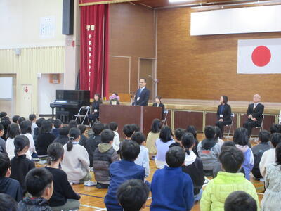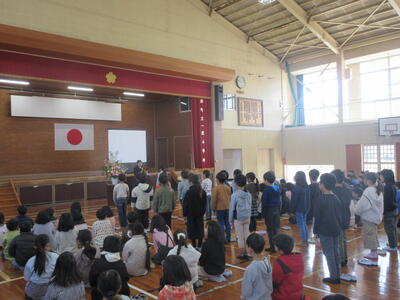 全校集会がありました。校長先生から、「あいさつ」「返事」「ありがとう」を意識して生活し、自然に気持ちを伝えることができるようになりましょうと、お話がありました。残りわずかですが、一人一人意識して学校生活をおくってほしいと思います。