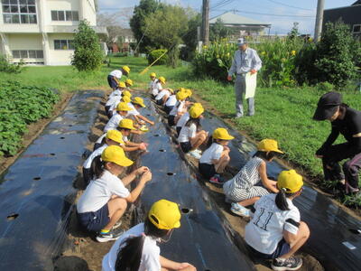 林先生に植え方や育て方を教えていただき、子どもたちは「大きく育つようにお世話を頑張ろう」