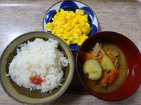 副菜のスクランブルエッグは、上の子どもが作りました。家庭科の調理実習で、うまく作ることができたので、張り切って作ってくれました。私が作る炒り卵とは違う出来上がりで、とてもおいしかったです。