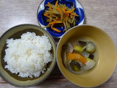 さて、久しぶりのおみそ汁の投稿です。月曜日は、「玉ねぎ、人参、しめじ、なす」、火曜日は、「玉ねぎ、しめじ、キャベツ、油揚げ」でした。肌寒く感じるようになると、温かい汁ものを食べると、体の中からじんわりと暖まっていくのが嬉しいですね。